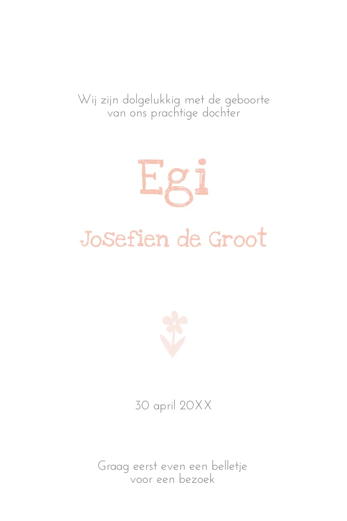 Mooi meisjes geboortekaartje Egi met folie en bloemendessin