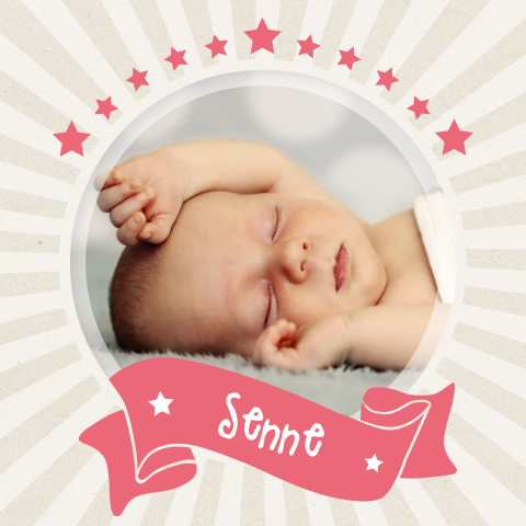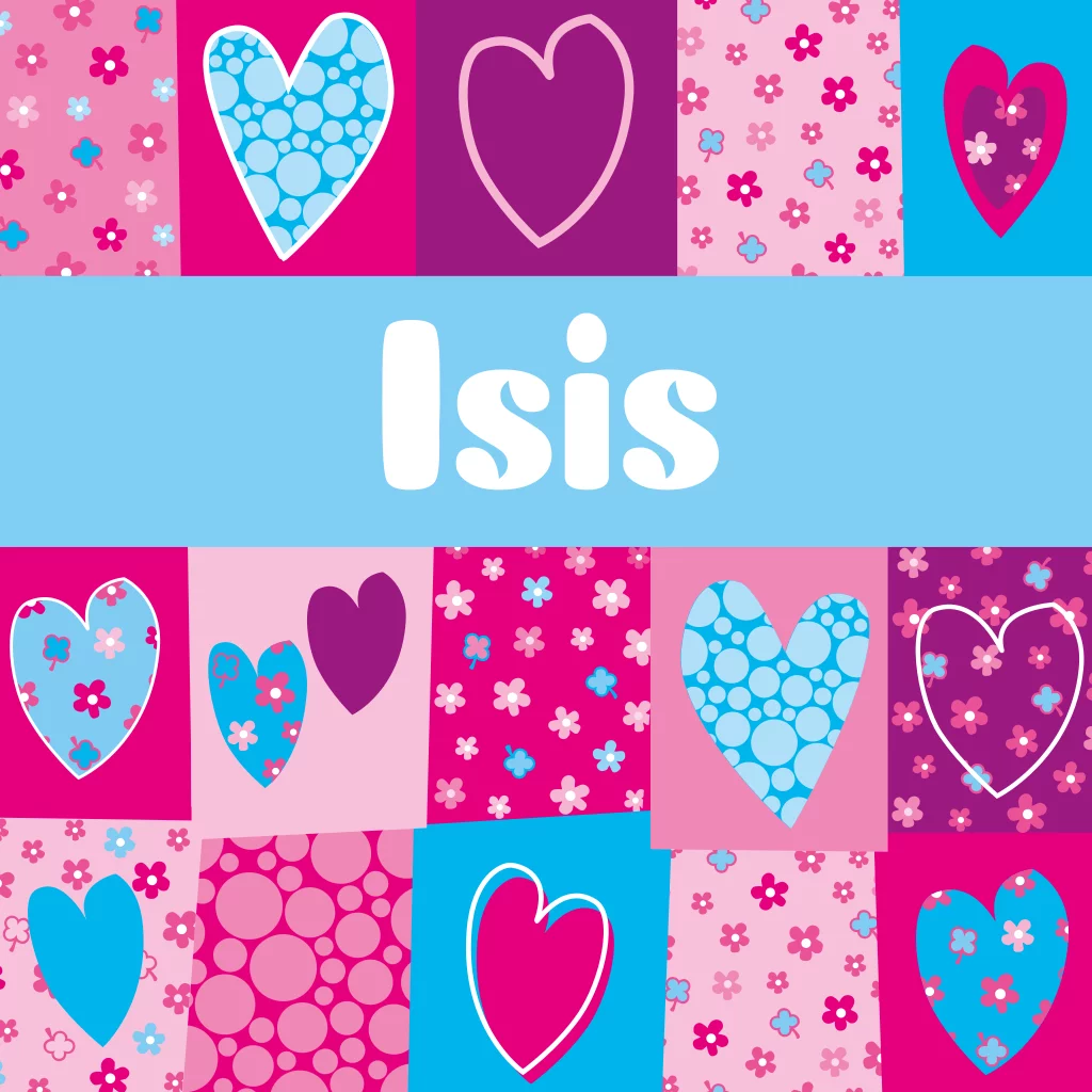 Hippe geboortekaart Isis met hartjes bloemen en dessins in roze blauw