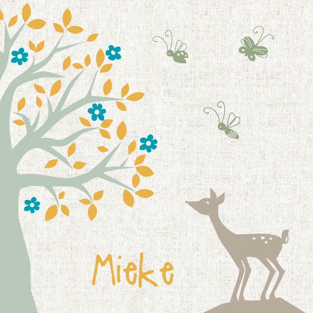 Retro lief geboortekaartje voor meisje Lieke met boom en hertje