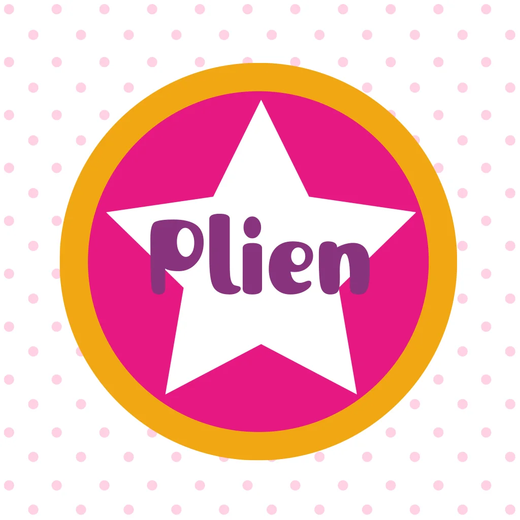 Origineel hip geboortekaartje Plien voor klein pasgeboren meisje met stippen dessin. Stijlvol hip design geboortekaartje om zelf te maken. Origineel kaartje in roze, oranje en paars met sterren en stippen waarvan je zelf de kleuren kunt aanpassen.