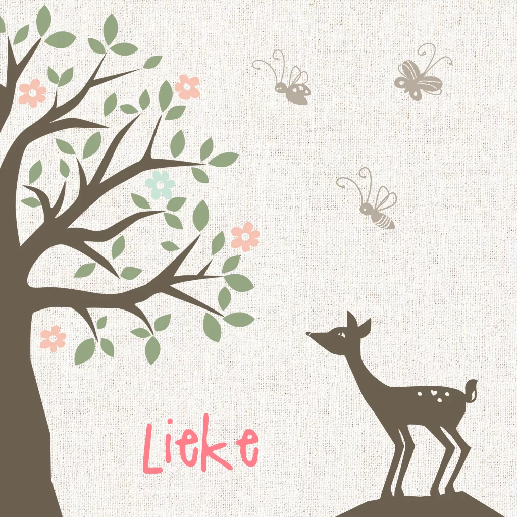 Retro lief geboortekaartje voor meisje Lieke met boom en hertje