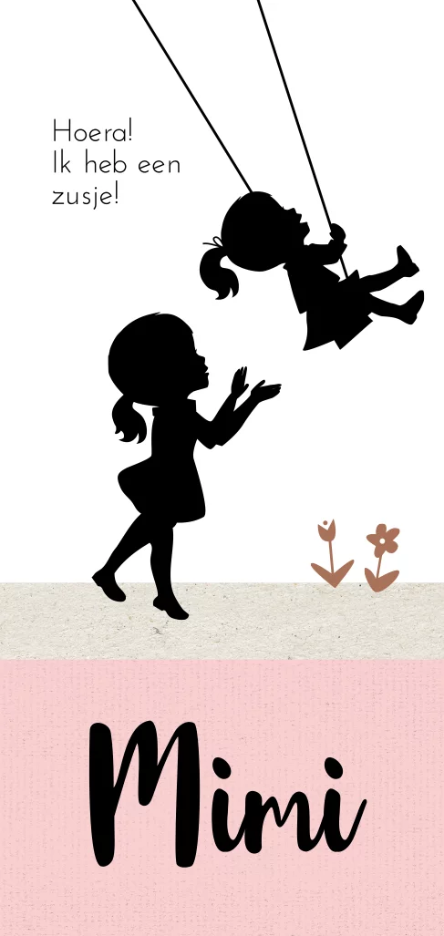 Enkele geboortekaart met silhouet van zusjes op schommel