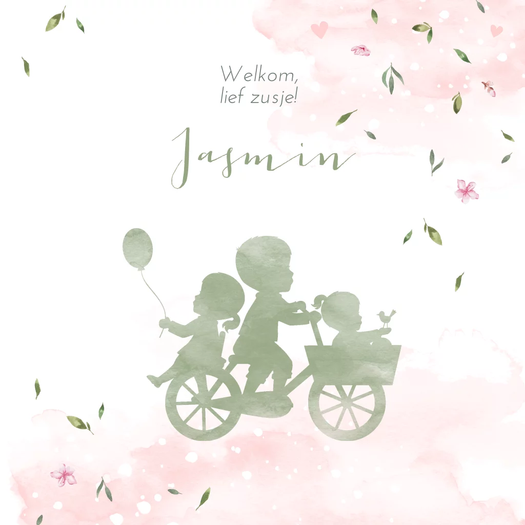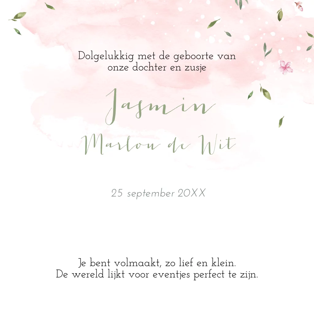 geboortekaartje aquarel silhouet en blaadjes confetti