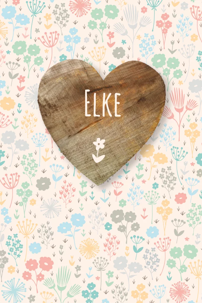 Mooi meisjes geboortekaartje Elke met hout en hart en bloemendessin