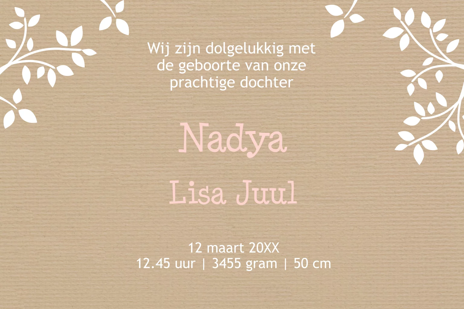 Trendy geboortekaartje met silhout jongen met zusje op kraft