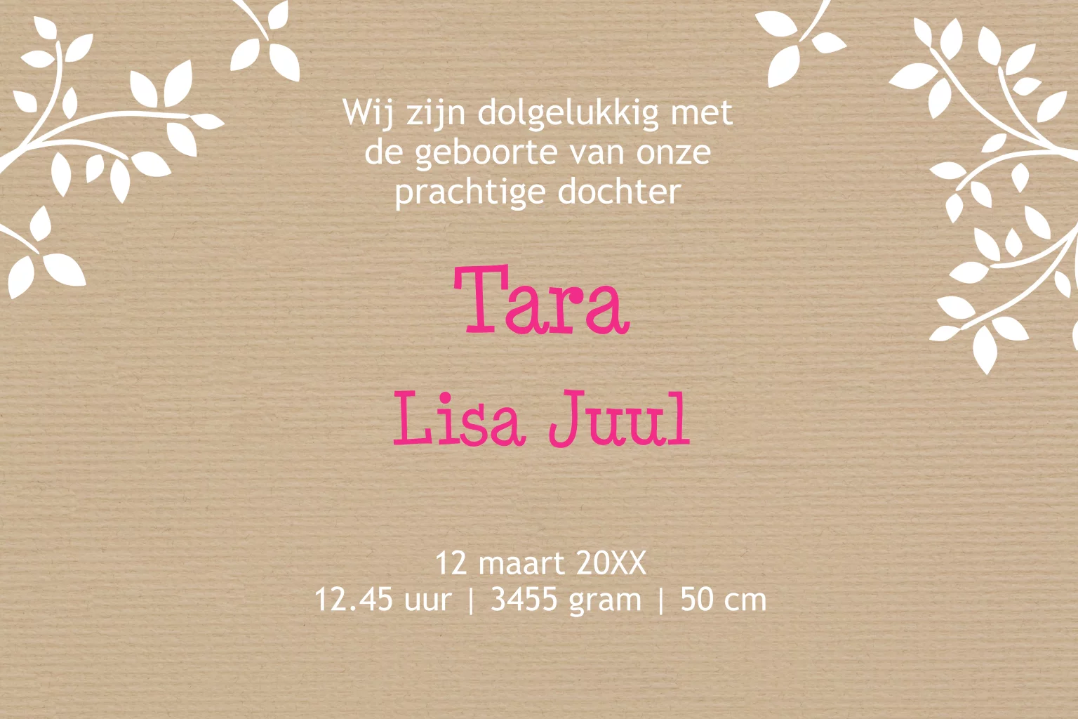 Trendy geboortekaartje met silhout meisje met zus op kraft