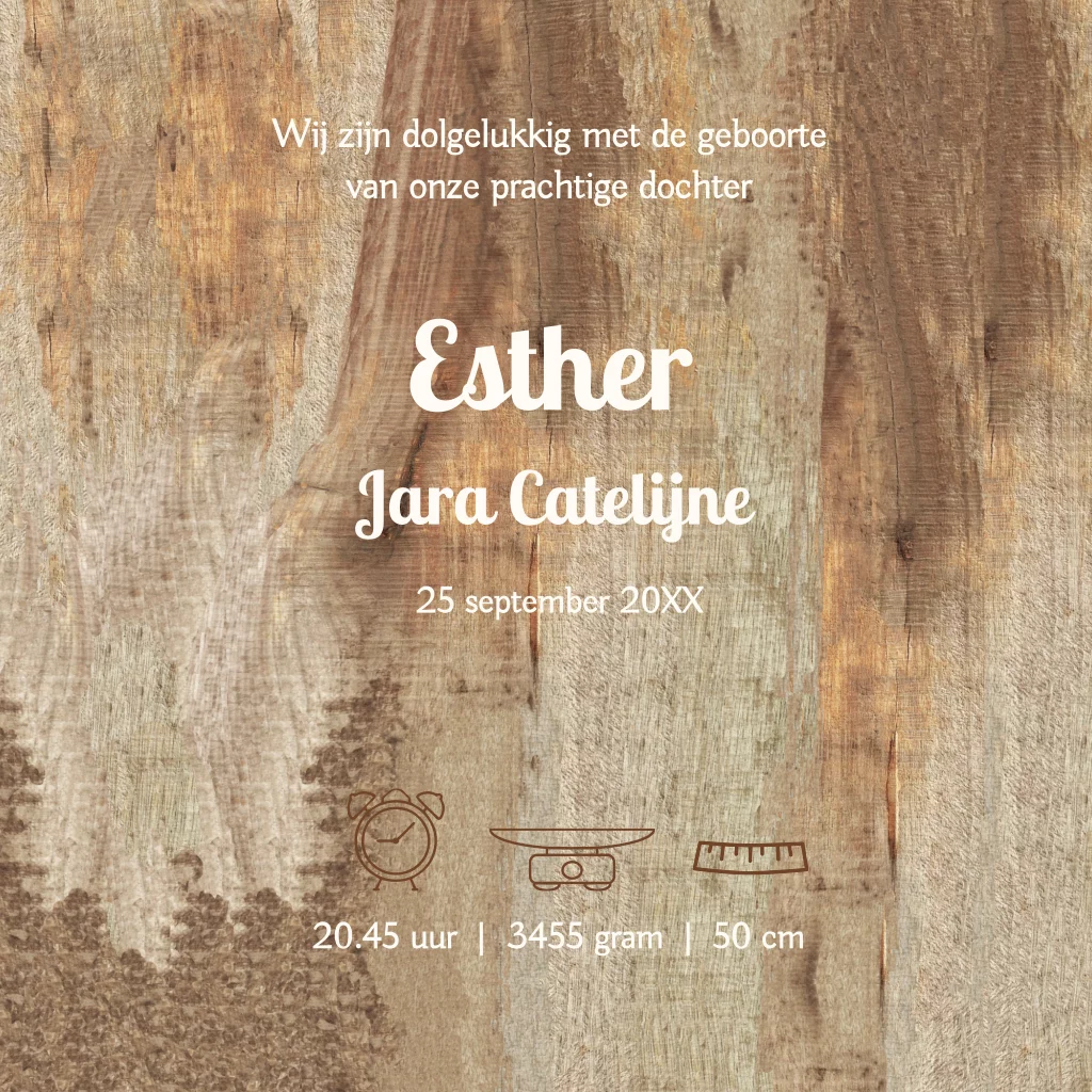 Mooie geboortekaart Esther met lieve uil hout en takjes voor meisje