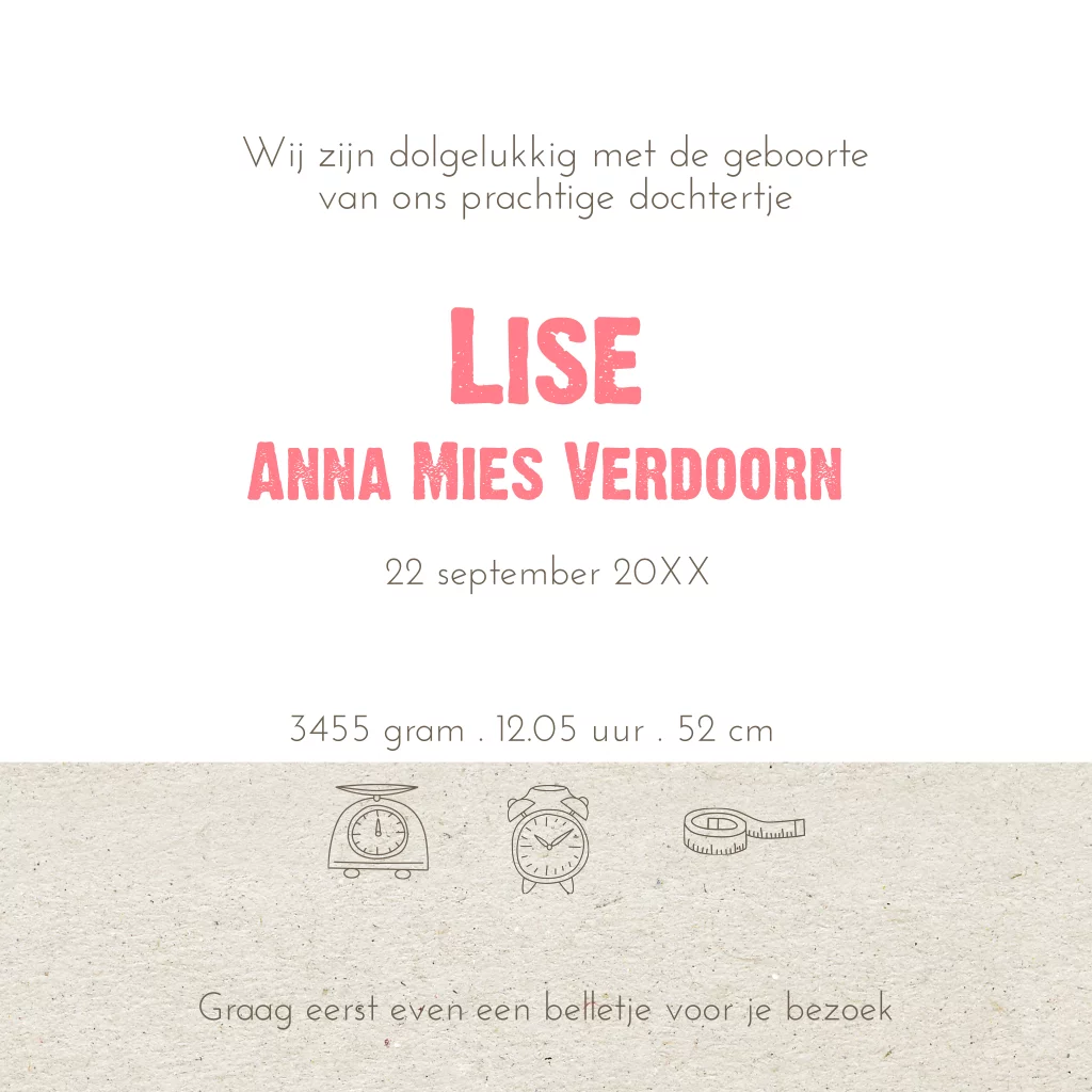 Geboortekaartje met lief meisje met beertje op karton
