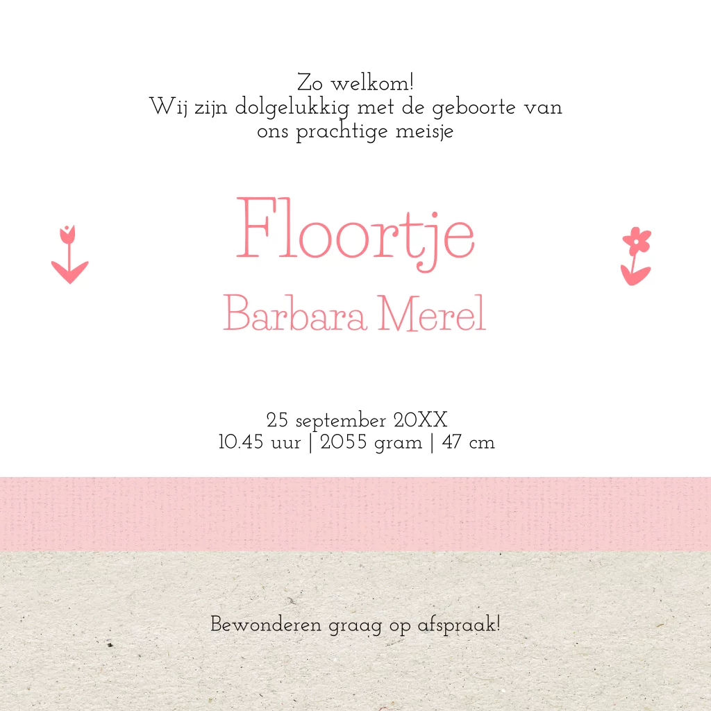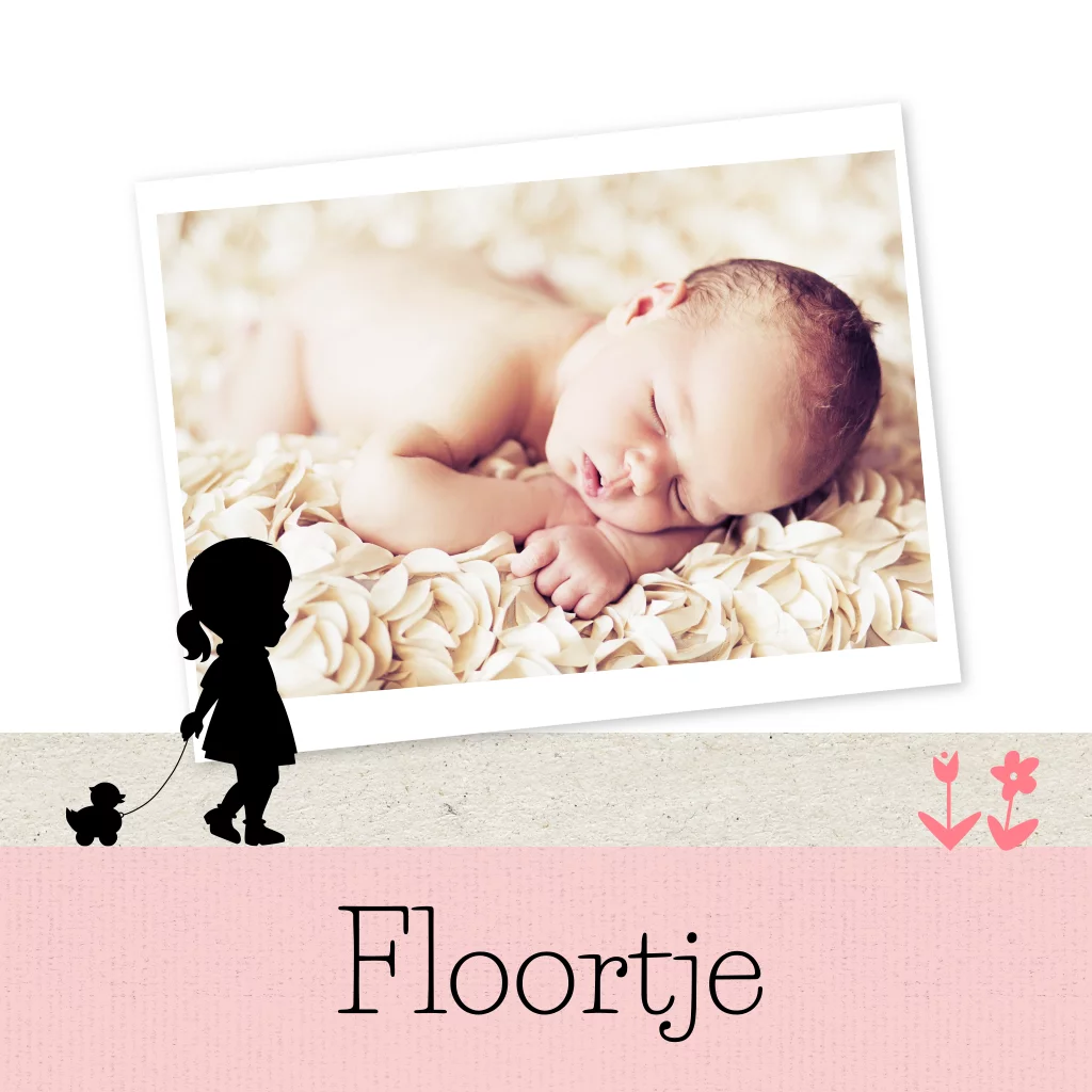 Lief en stijlvol geboortekaartje voor meisje met foto in silhouette met kraft papier op de achtergrond.