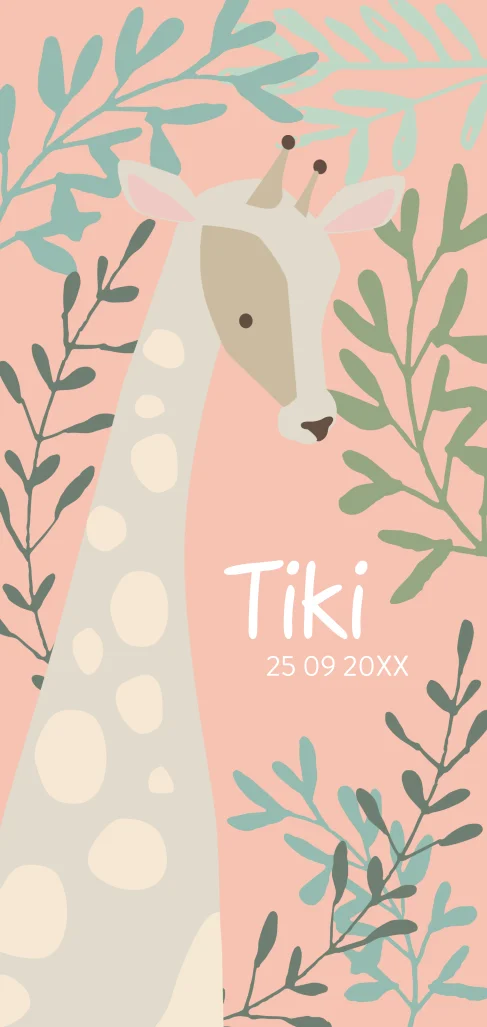 Leuke geboortekaart met een lieve giraf. Personaliseer deze kaart door de achtergrond en teksten aan te passen. Een proefdrukje heb je al in huis voor €1,-