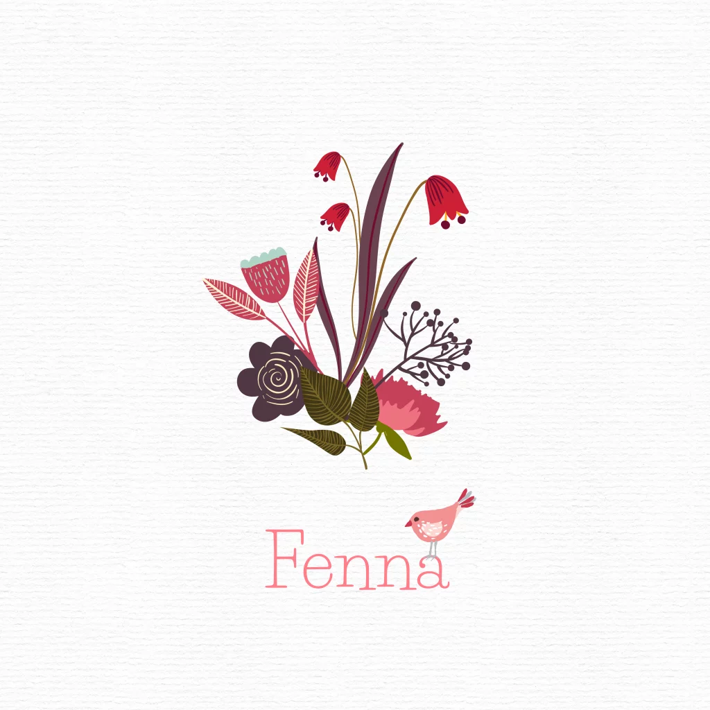 Lief en stijlvol geboortekaartje met lieve bloemetjes en vogeltje.