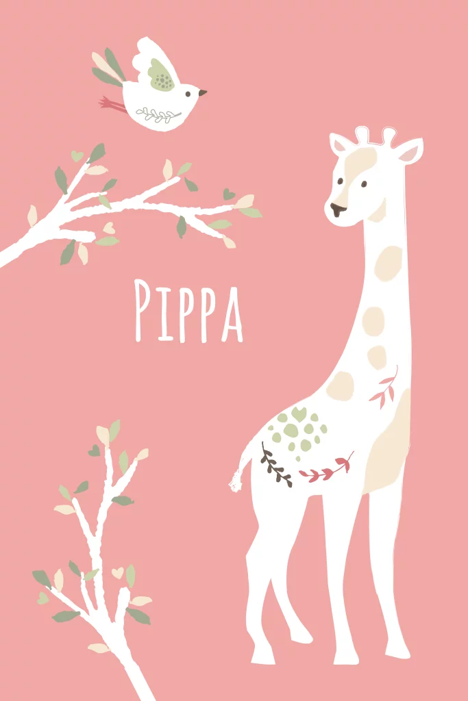 Lief geboortekaartje met schattig vogeltje en giraf voor jongen of meisje, kleur zelf de achtergrond