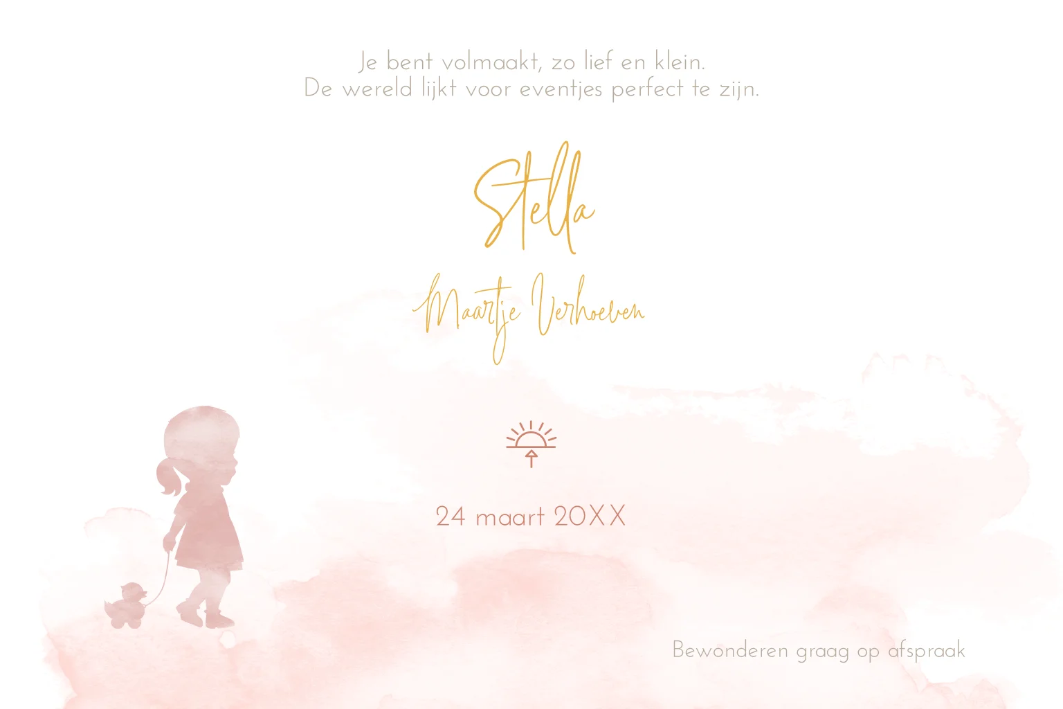 Schattig geboortekaartje waterverf silhouet en veldbloemen