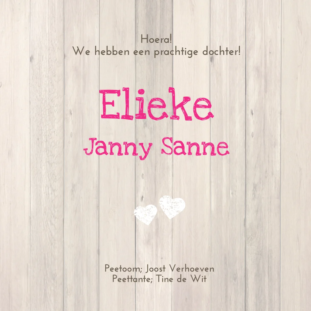 hip houten geboortekaartje met stoer steigerhout en geschilderd hart