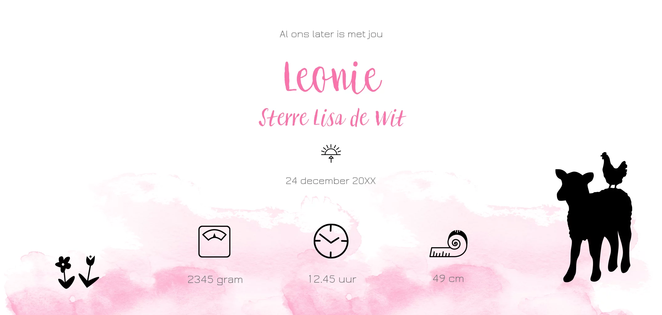 Stoer silhouet geboortekaartje met tractor en boerderijdieren