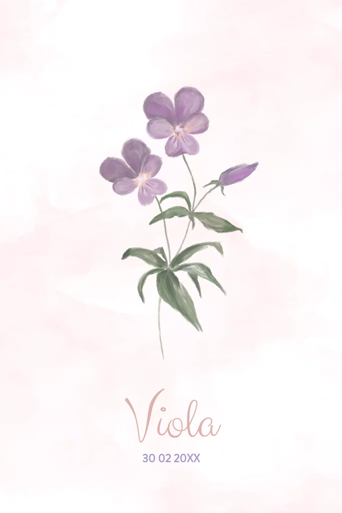 Waterverf geboortekaart geboortebloem viooltje februari