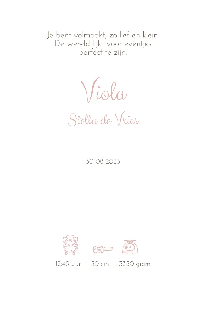 Mooie staande geboortekaart met geboortebloem viooltjes voor de maand februari op een watercolor achtergrond. Wil je liever een ander formaat, laat het ons weten!