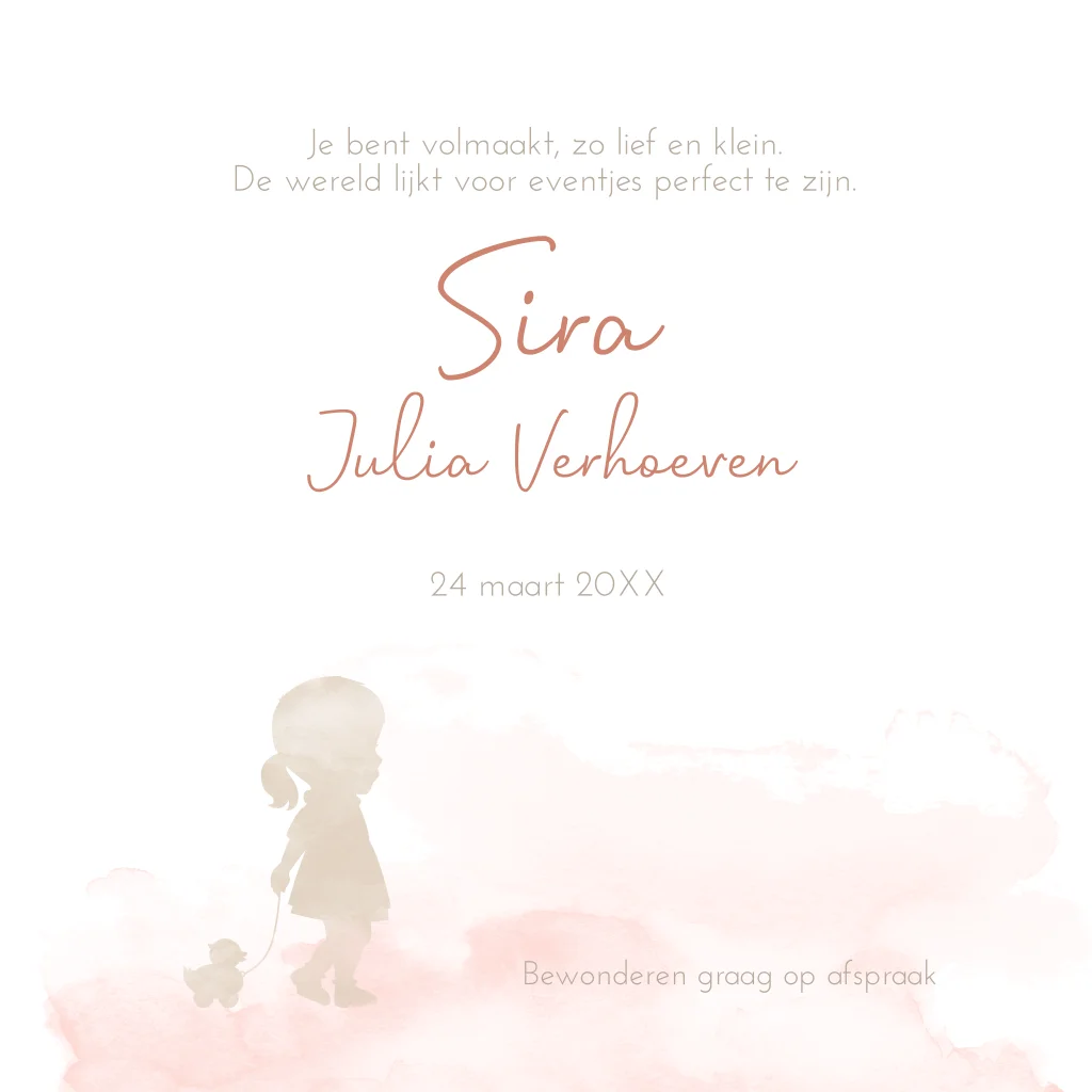 Waterverf geboortekaartje met silhouet meisje en grote broer