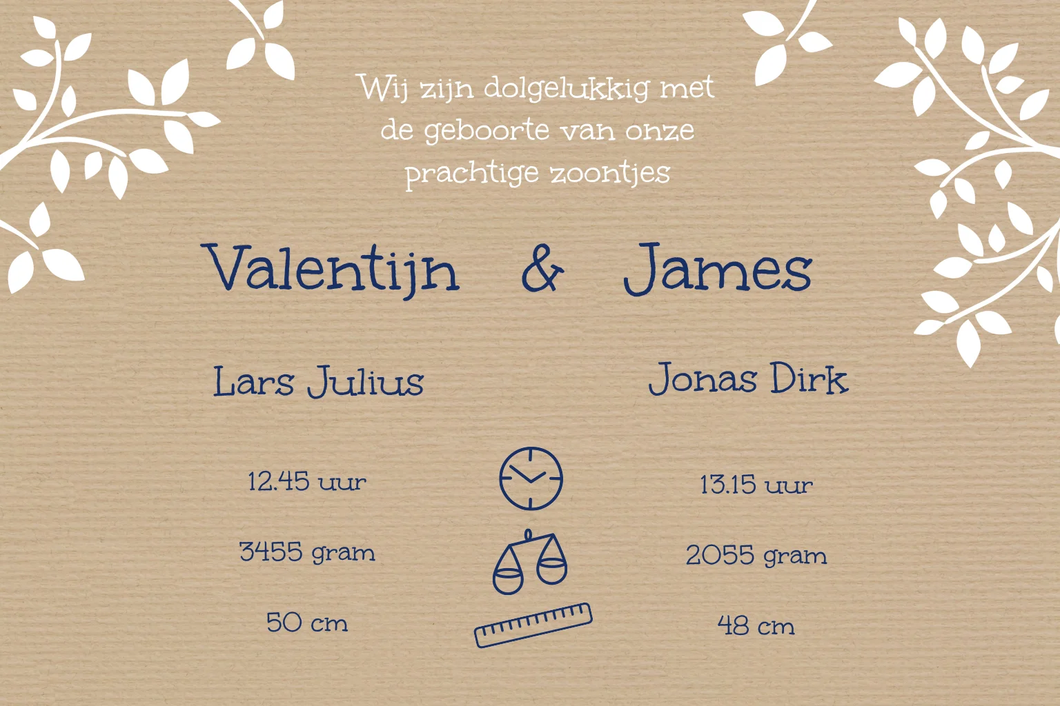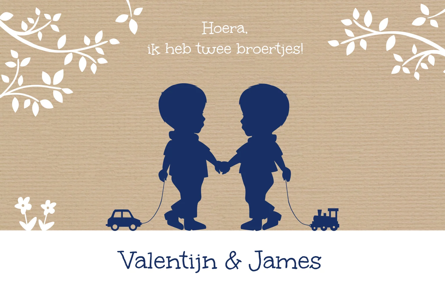 Trendy geboortekaartje met silhout van tweeling broertjes