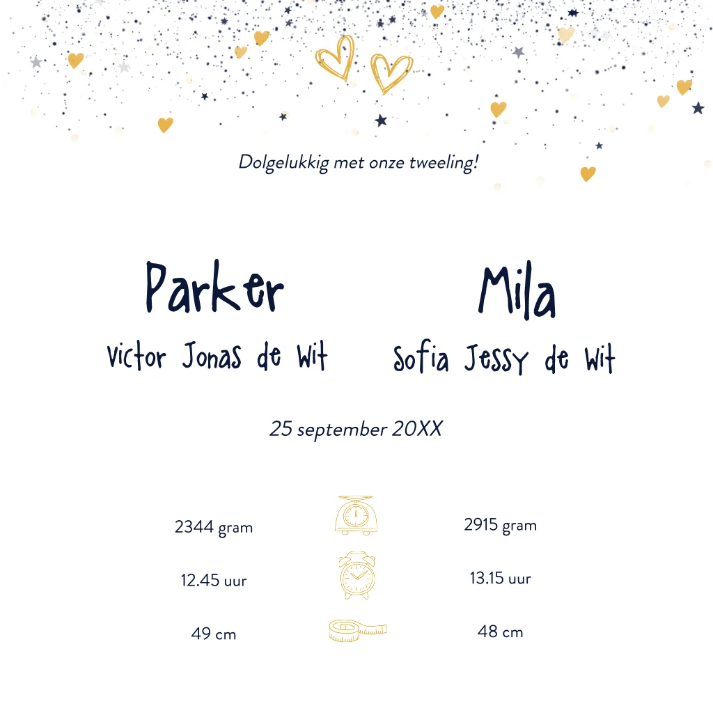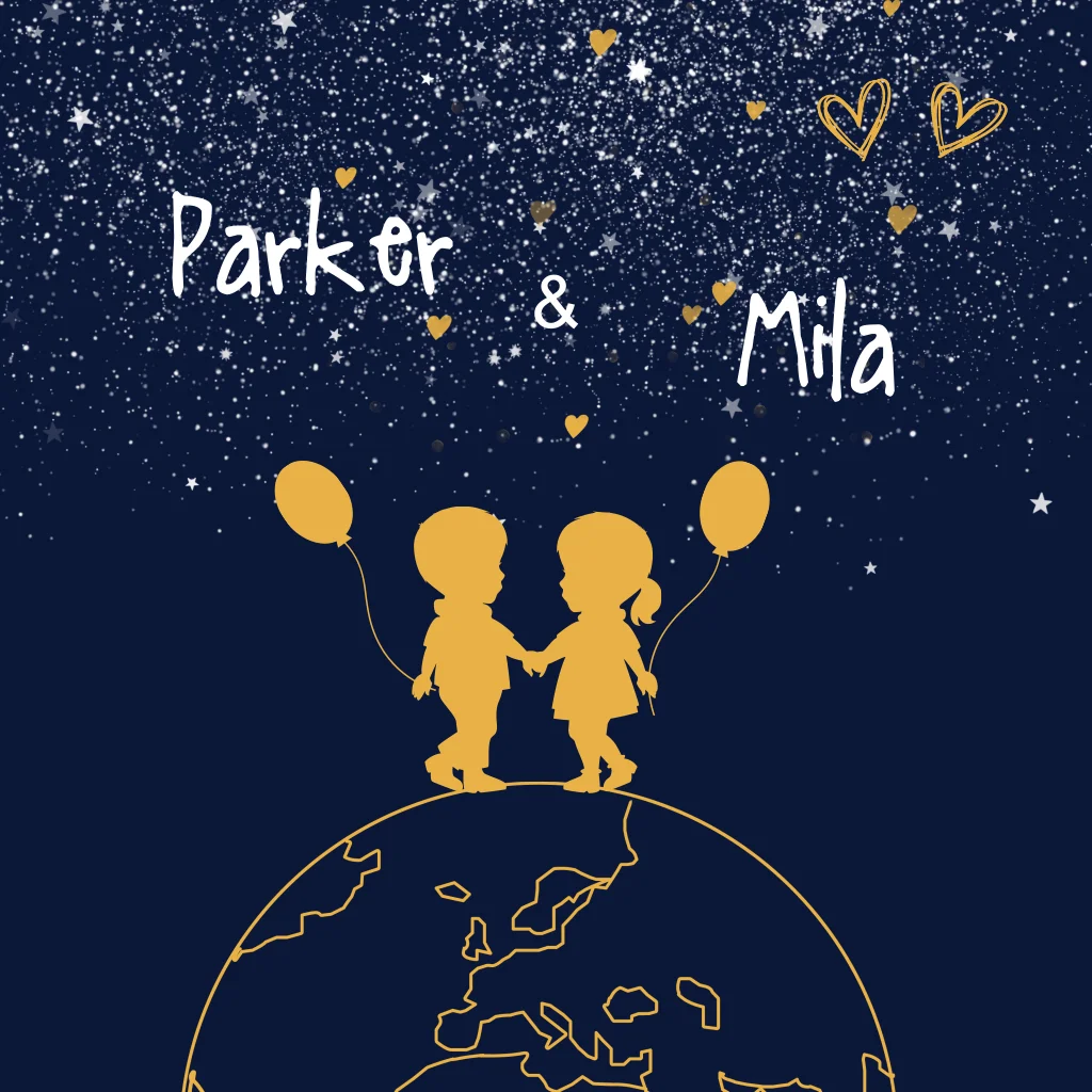 Silhouet geboortekaartje voor tweeling jongetje en meisje op de wereldbol. Eenvoudig aan te passen naar tweeling meisjes of tweeling jongens
