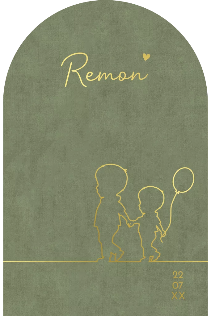 Goudfolie babykaartje voor een zoontje met twee broertje hand in hand in lijnen