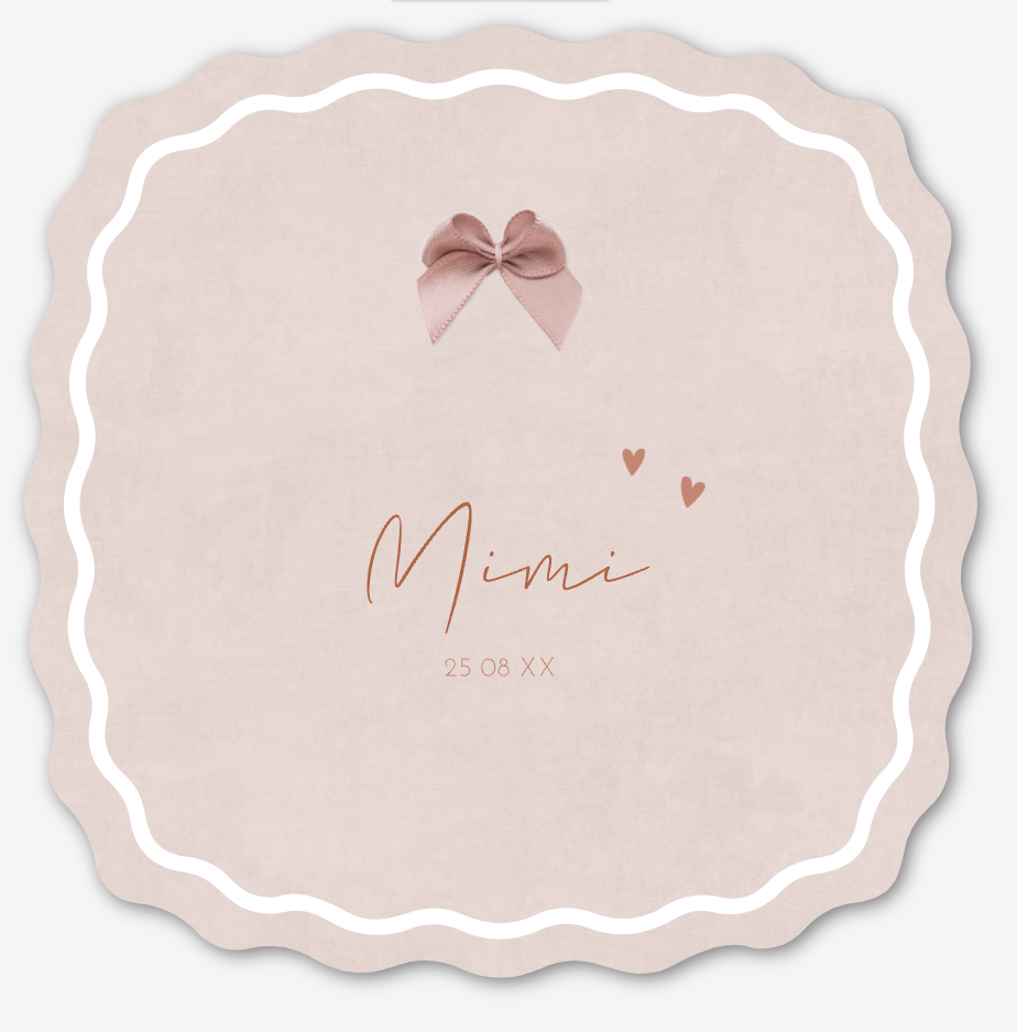 Een lief stans geboortekaartje met golvend randje en echt strikje
