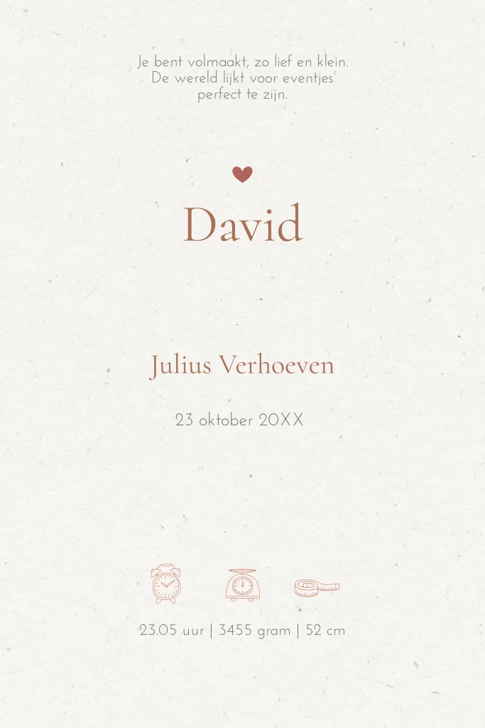 Een prachtige neutrale unisex geboortekaart met een doorkijkje en een illustratie van een klein lief beertje. De naam is hier gedrukt aan de binnenzijde en zie je door het stans gaatje aan de voorkant van deze hippe geboortekaart.