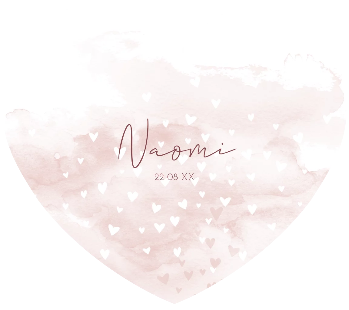 Super mooie geboortekaart in de vorm van een hart met confetti van waterverf hartjes. Deze kaart kun je zelf helemaal passen, de kleuren, teksten en afbeeldingen.