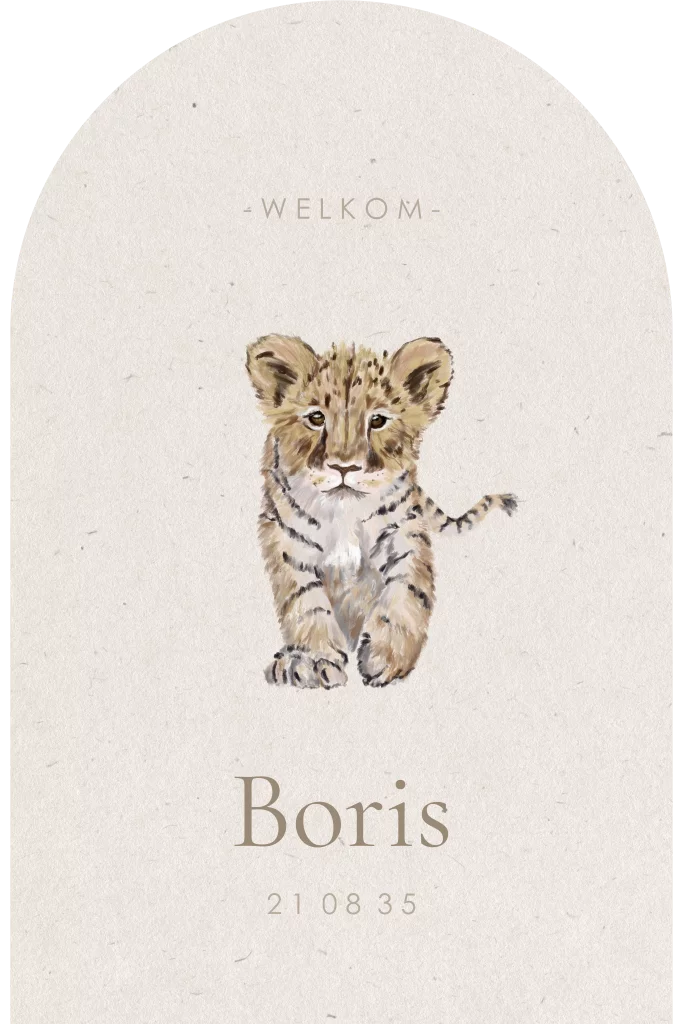 Geboortekaartje stans unisex met lief leeuwtje - tijgertje