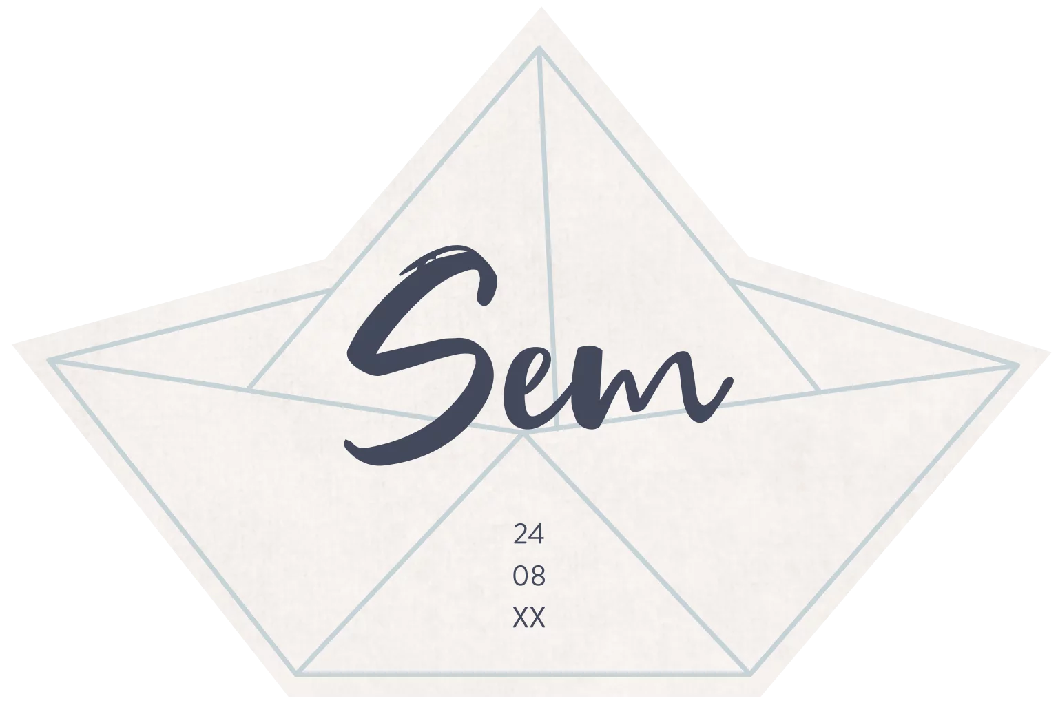 Stans geboortekaartje in de vorm van een bootje gesneden. Dit kaartje kun je eenvoudig zelf bewerken door de kleuren en teksten aan te passen