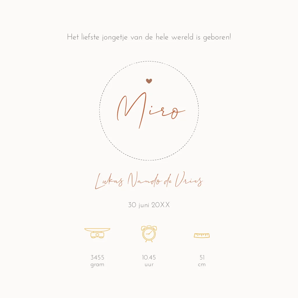 Een schattig geboortekaartje met voor een jongetje met een grote zus, heb je een ouder zoontje gebruik dan een passend silhouet uit onze beeldbank. Dit lieve jongenskaartje met een stans / doorkijkje kun je zelf aanpassen door de kleuren en teksten te veranderen.