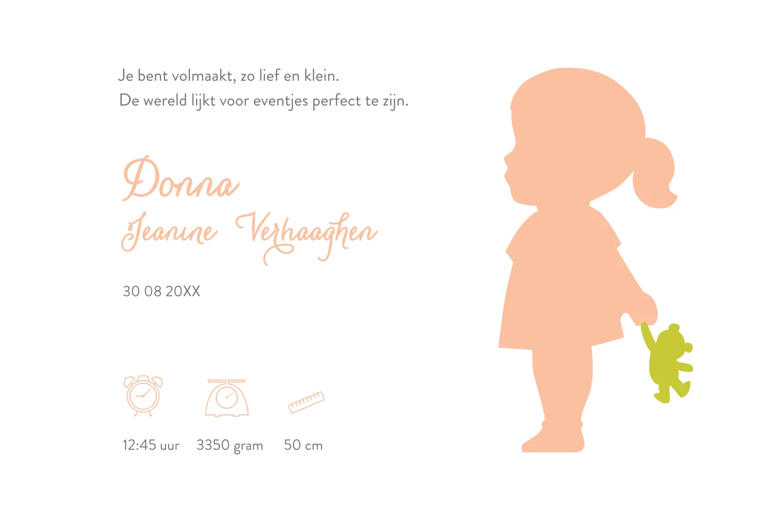 Tof stans geboortekaartje silhouet meisje als doorkijkje en bloemen