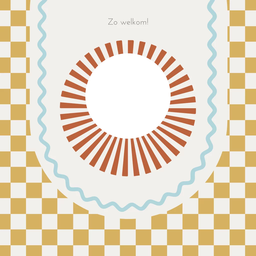 Een trendy unisex geboortekaartje met stoere details en een geblokte / ruiten achtergrond en een doorkijkje naar binnen. De kleuren en het lettertype van dit toffe geboortekaartje kun je eenvoudig zelf aanpassen. Dit kaartje heeft een stans rondje waar de naam van jullie kindje in tevoorschijn komt.