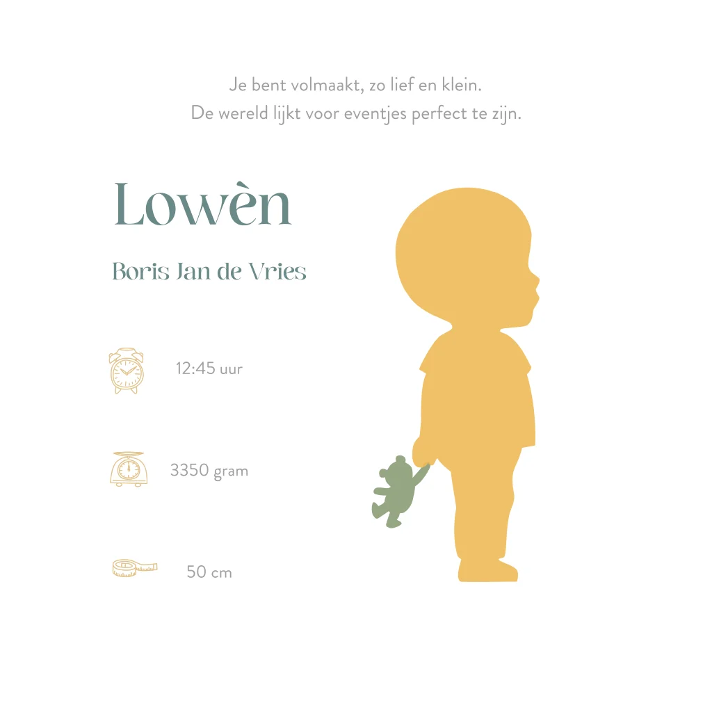 Trendy stans geboortekaart met silhouet jongetje doorkijkje