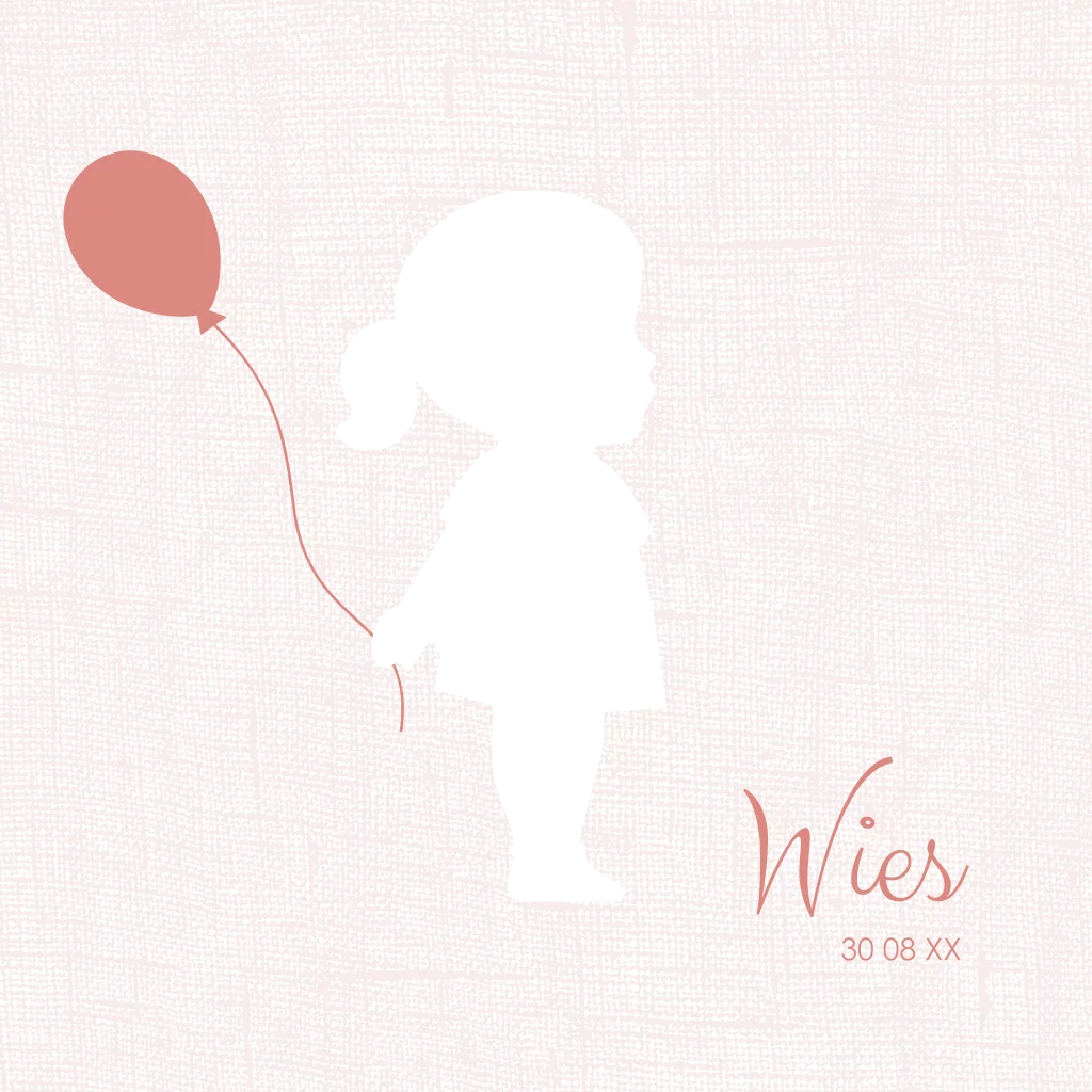Een trendy geboortekaartje met een silhouet van een meisje wat is uitgesneden zodat je er doorheen kunt kijken. Pas het kaartje naar wens aan in onze online editor.