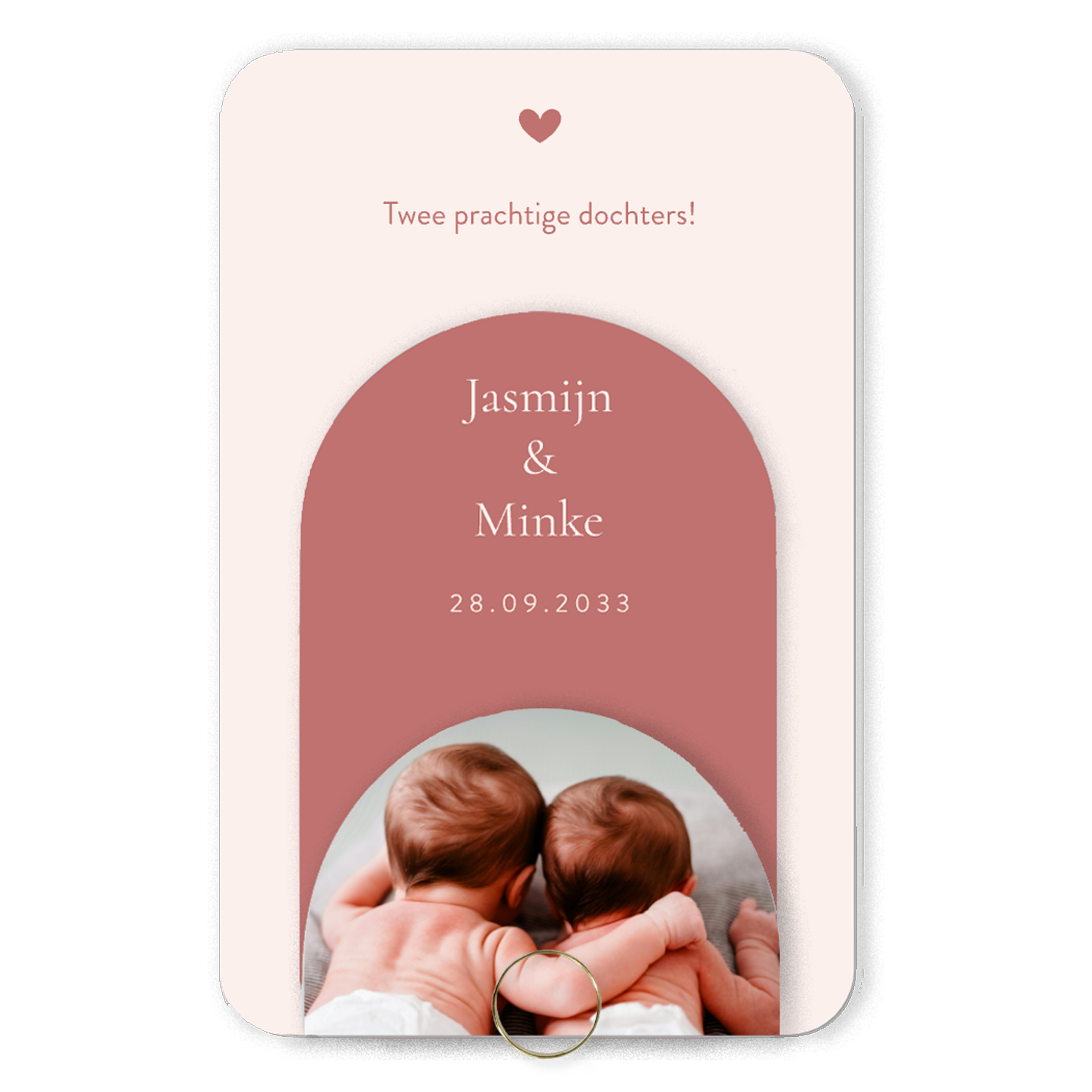 Dit mooie lieve 3-delig stapel geboortekaartje voor een tweeling bestaat uit losse kaartjes die je zelf kunt bewerken. Plaats een mooie foto van jullie kindjes en pas de kleuren aan als je bijvoorbeeld twee jongetjes krijgt of een dochter en een zoontje. Heb je hierbij hulp nodig dan horen we het graag!