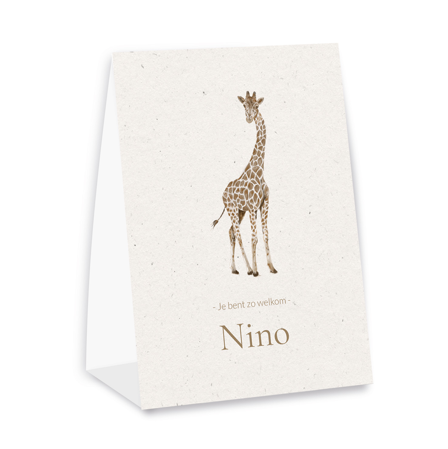 Een super leuk unisex geboortekaartje met een watercolor illustratie van een mooie giraf. Dit tent kaartje kun je zo in elkaar vouwen zodat het kan blijven staan, en je kunt het eenvoudig bewerken naar eigen idee.