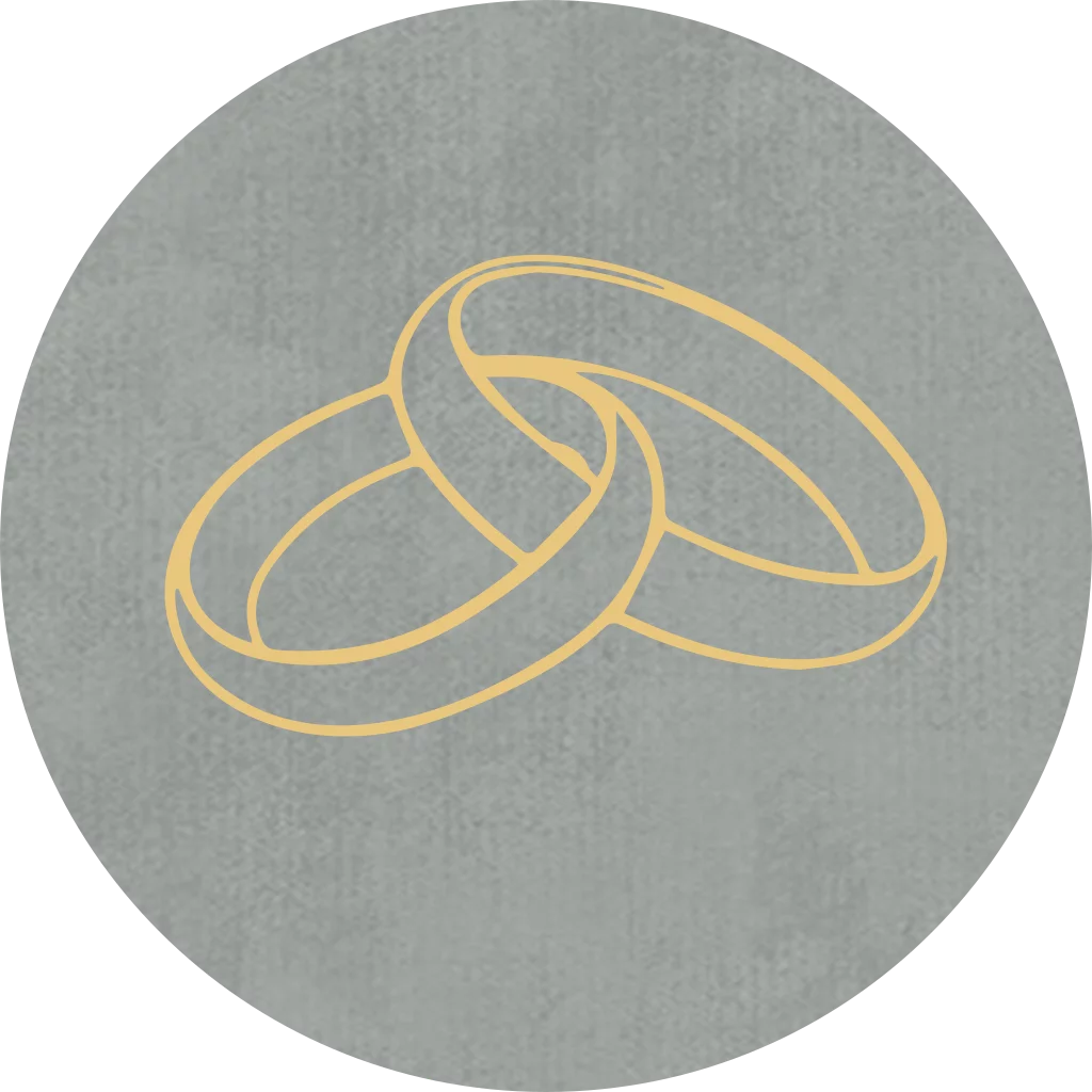 Sluitsticker met trouwringen op een velvet grijze achtergrond