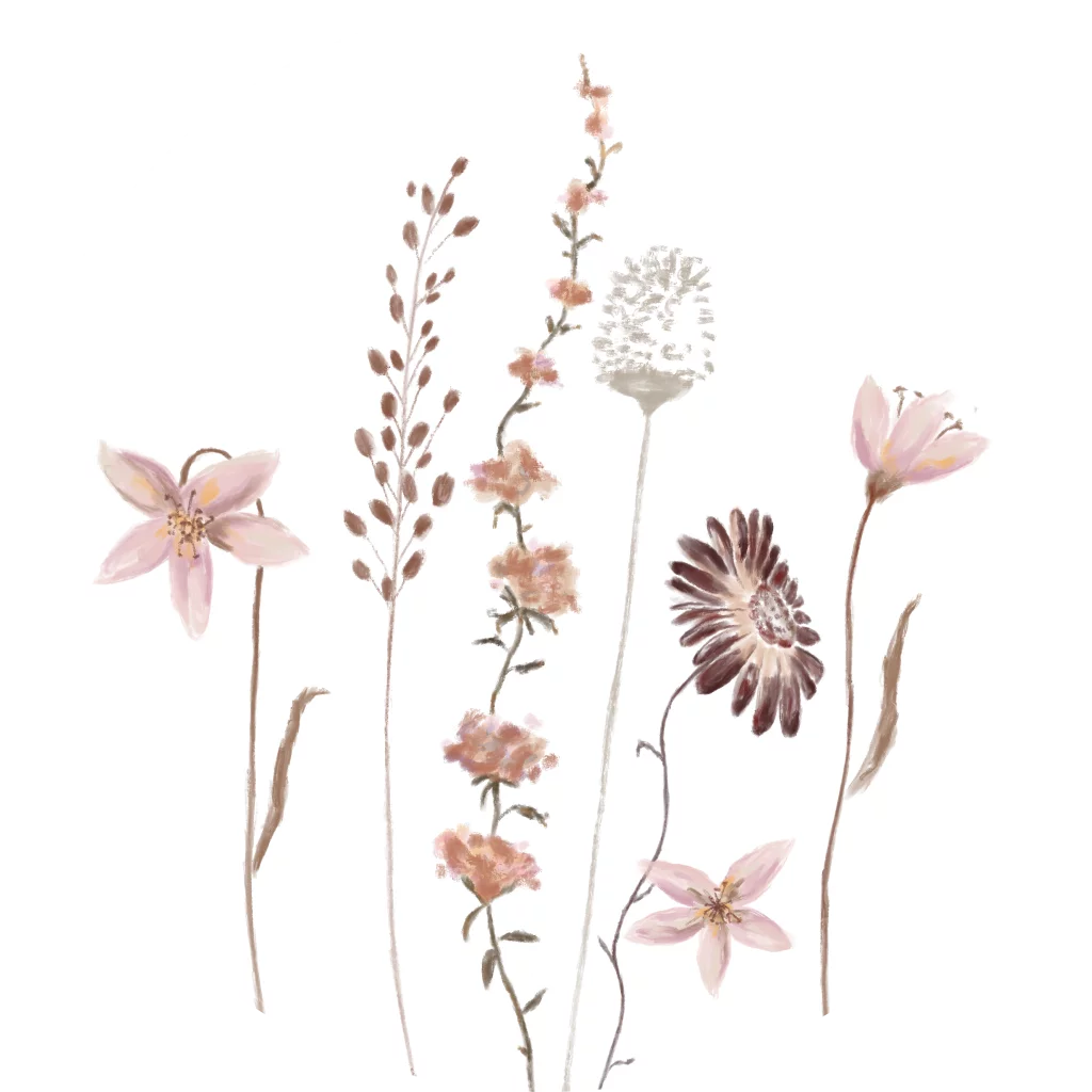 Sluitzegel trouwkaart illustraties veldbloemen
