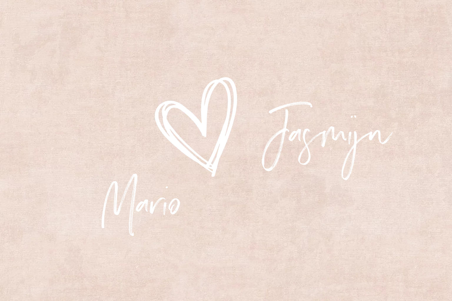 Mooie liefdevol goudfolie trouwkaartje met de namen en een hartje in foliedruk op een velvet achtergrond. De hartjes op deze trouwkaart kun je een andere kleur geven. Foliedruk aan de binnen- en buitenzijde.