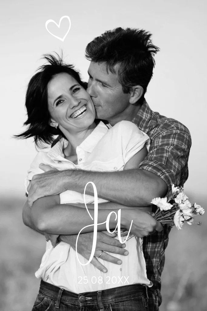 Stijlvolle trouwkaart met goudfolie en jouw eigen foto. Deze kaart kun je zelf eenvoudig bewerken.