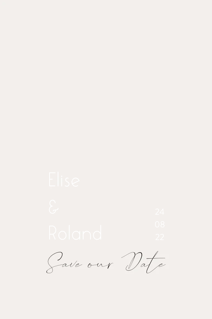 Moderne save-the date kaart met de namen in goudfolie en ronde hoeken. Deze kaart past bij een van onze trouwkaarten die je ook vind bij de huisstijlen.