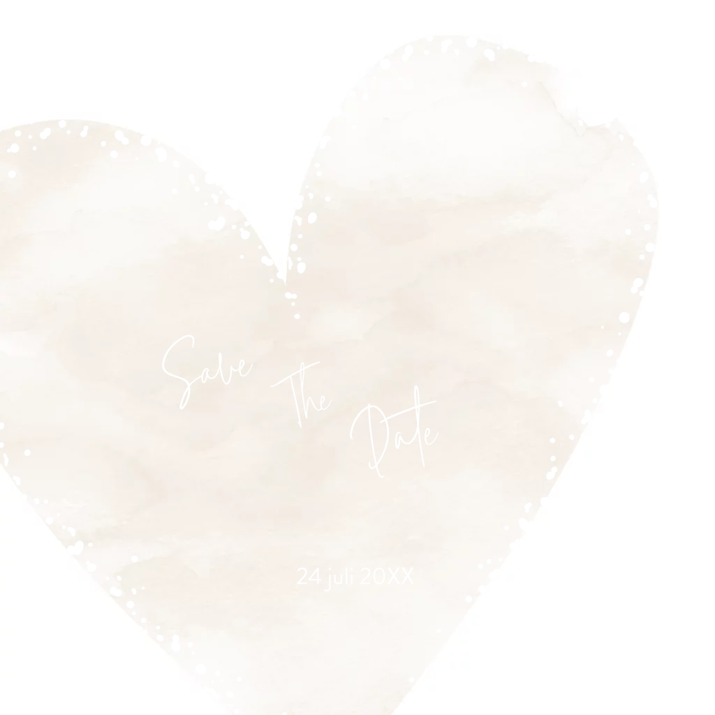 Folie Save-the-Date kaart met waterverf hart en randje van spettertjes, hier met roséfolie. Wil je deze kaart liever zonder folie neem dan contact met ons op.