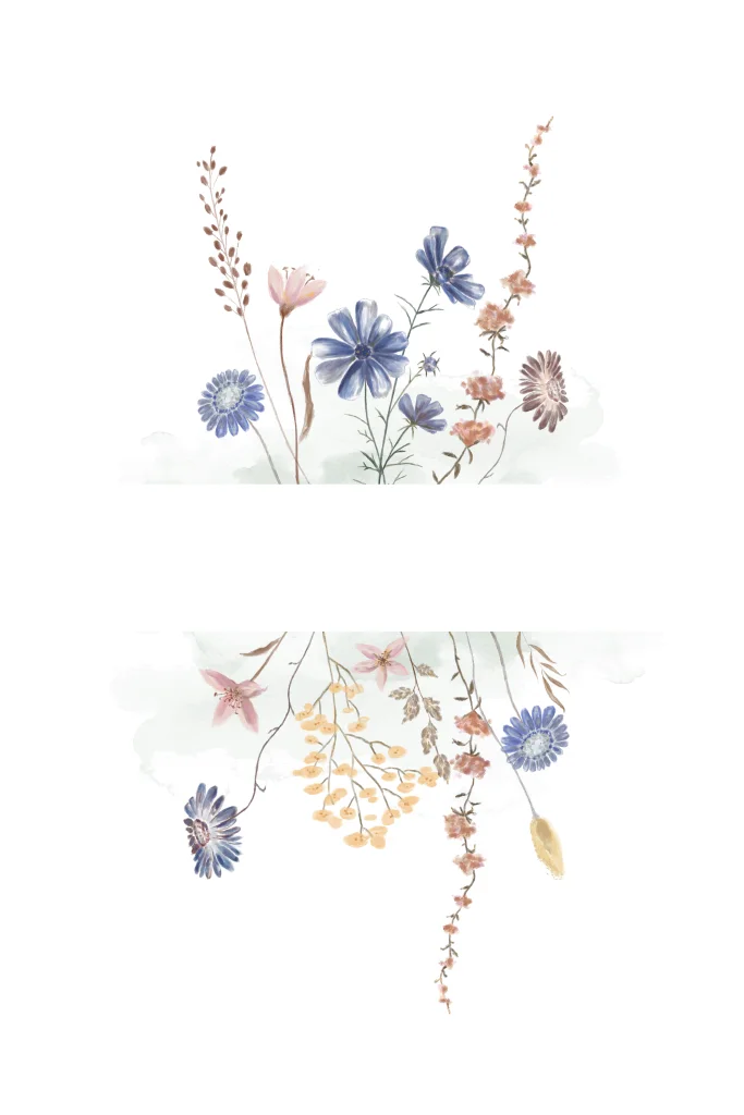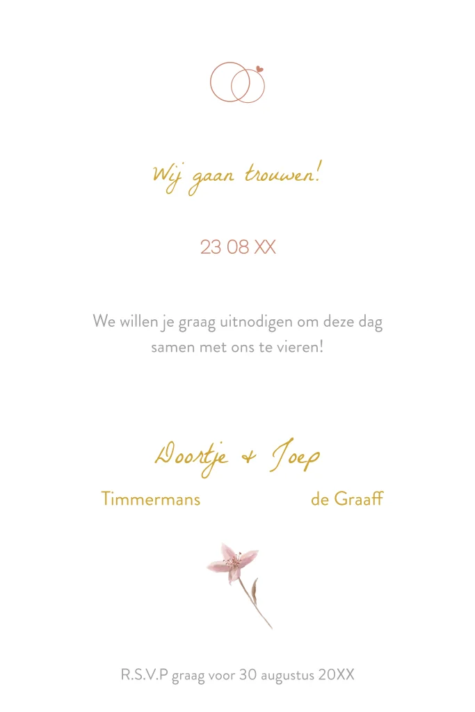 Een sjieke trouwkaart met getekende veldbloemen en jullie namen in foliedruk.