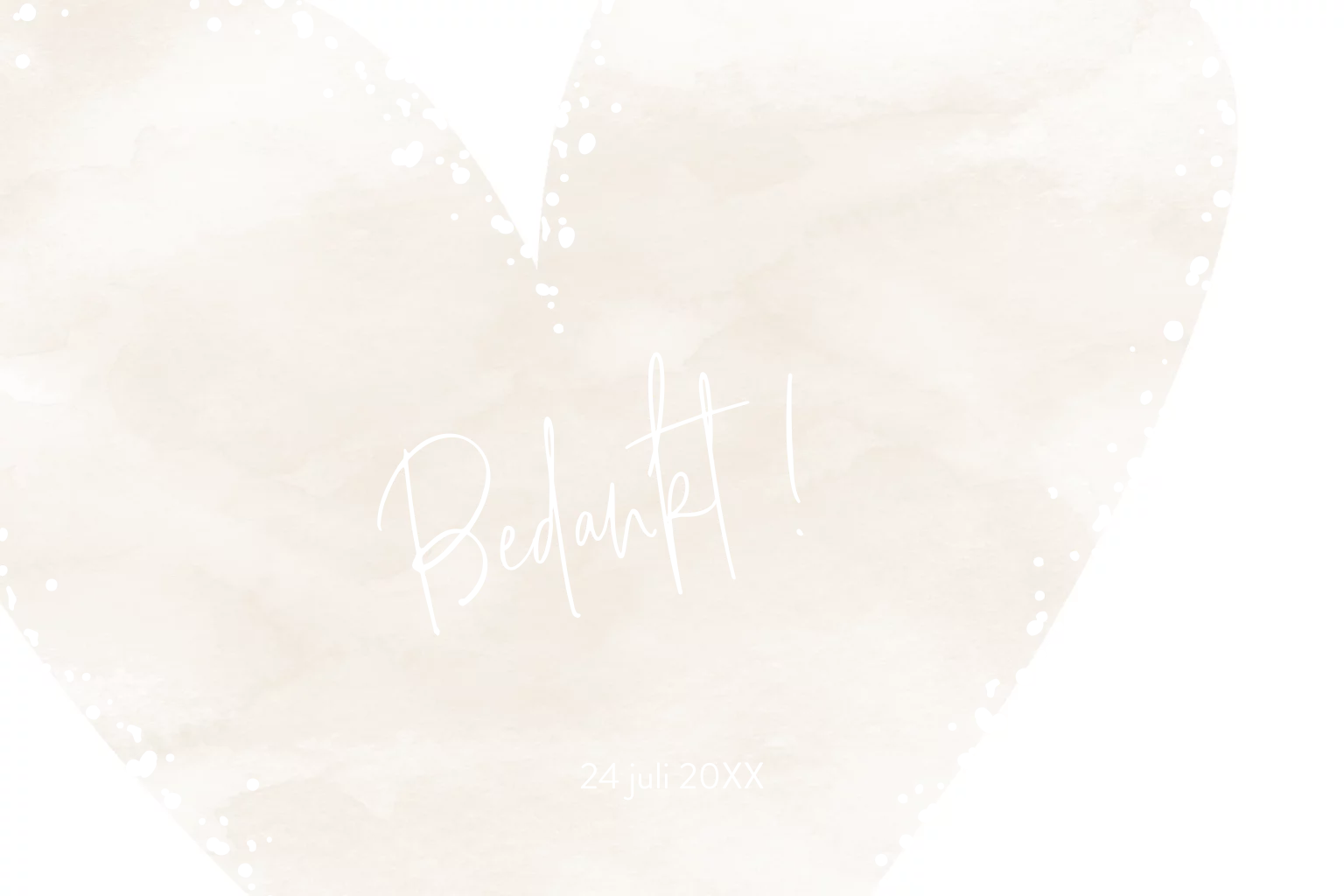 Mooie roséfolie bedankkaart met een folie spetter randje om een waterverf hart in beige tinten.