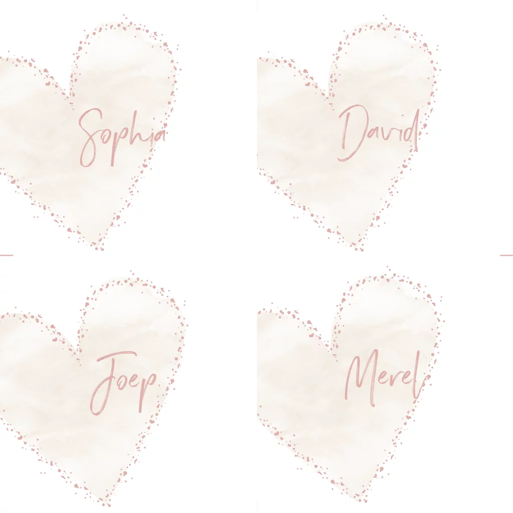 Naamkaartjes (DIY) met hart voor jullie bruiloft