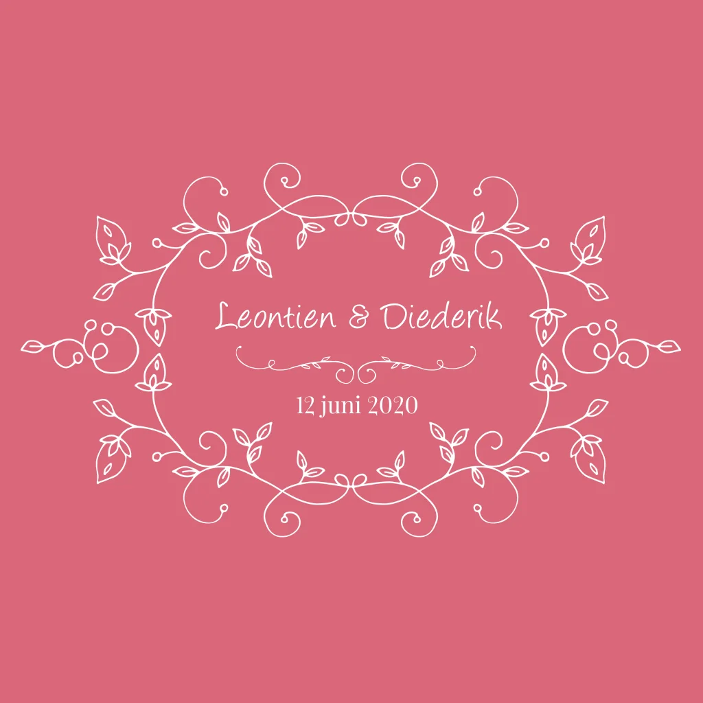 Stijlvolle, romantische moderne trouwkaart met getekend bloemenkransje waarin jullie namen kunnen staan. Kies zelf de kleuren en het lettertype.
