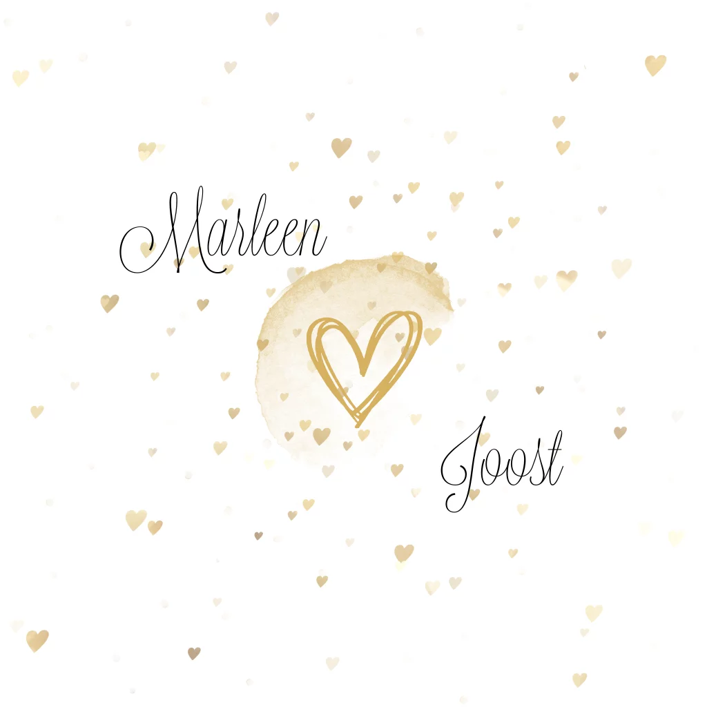 Mooie trouwkaart met confetti van goudkleurige hartjes