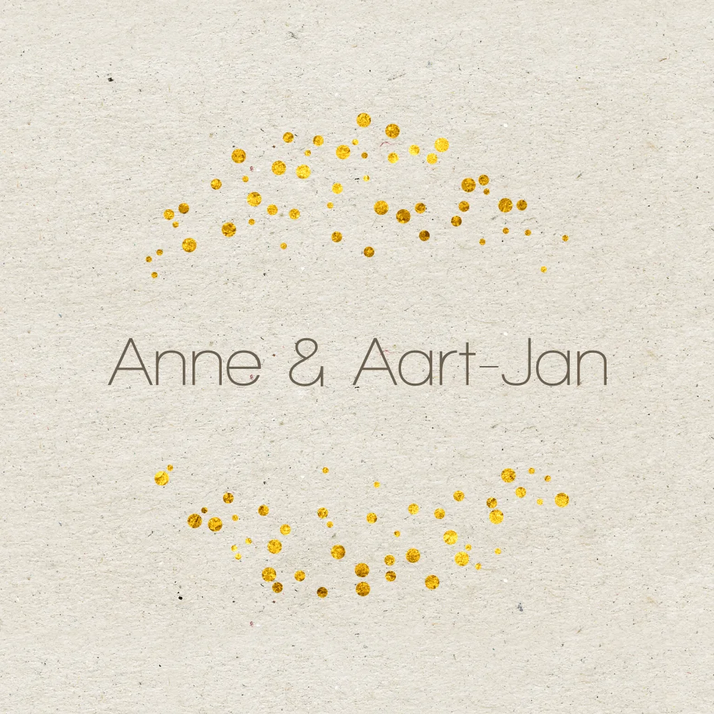 mooie trouwkaart met gouden stipjes in cirkel op karton