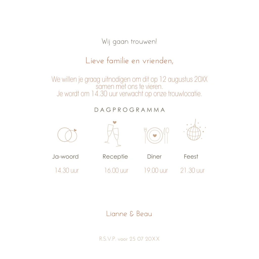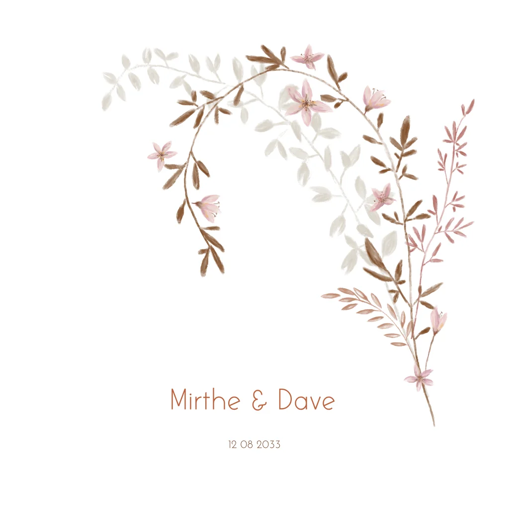 We do! Gave trouwkaart met waterverf bloemen en takjes een lichte achtergrond. Van deze kaart is een hele trouwhuisstijl beschikbaar